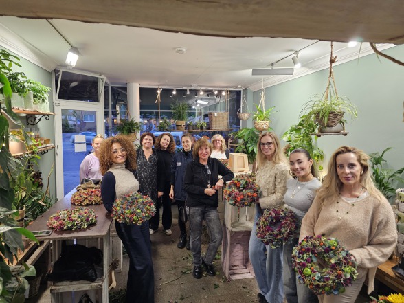 Unter fachkundiger Anleitung lernst du floristische Techniken kennen, mit denen du einen harmonischen Kranz in warmen Herbsttönen steckst – perfekt als Tisch- oder Türschmuck. Ob leuchtende Chrysanthemen, Beerenzweige, Ziergräser oder herbstliches Laub – wir arbeiten ausschließlich mit saisonalen Materialien, die den goldenen Herbst in deinem Zuhause erlebbar machen.